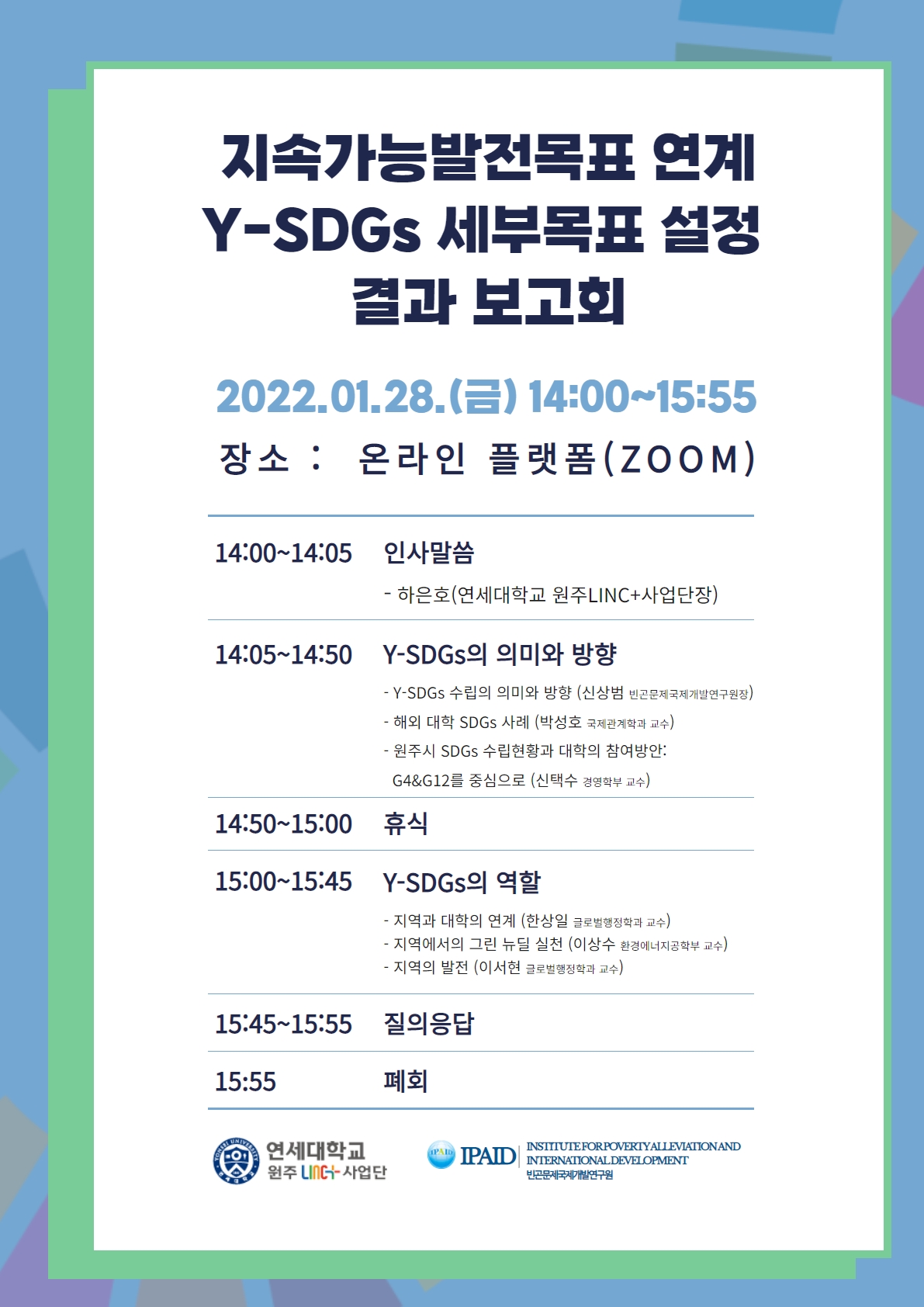 2022.01.28 지속가능발전목표 연계 Y-SDGs 세부목표 설정 결과보고회