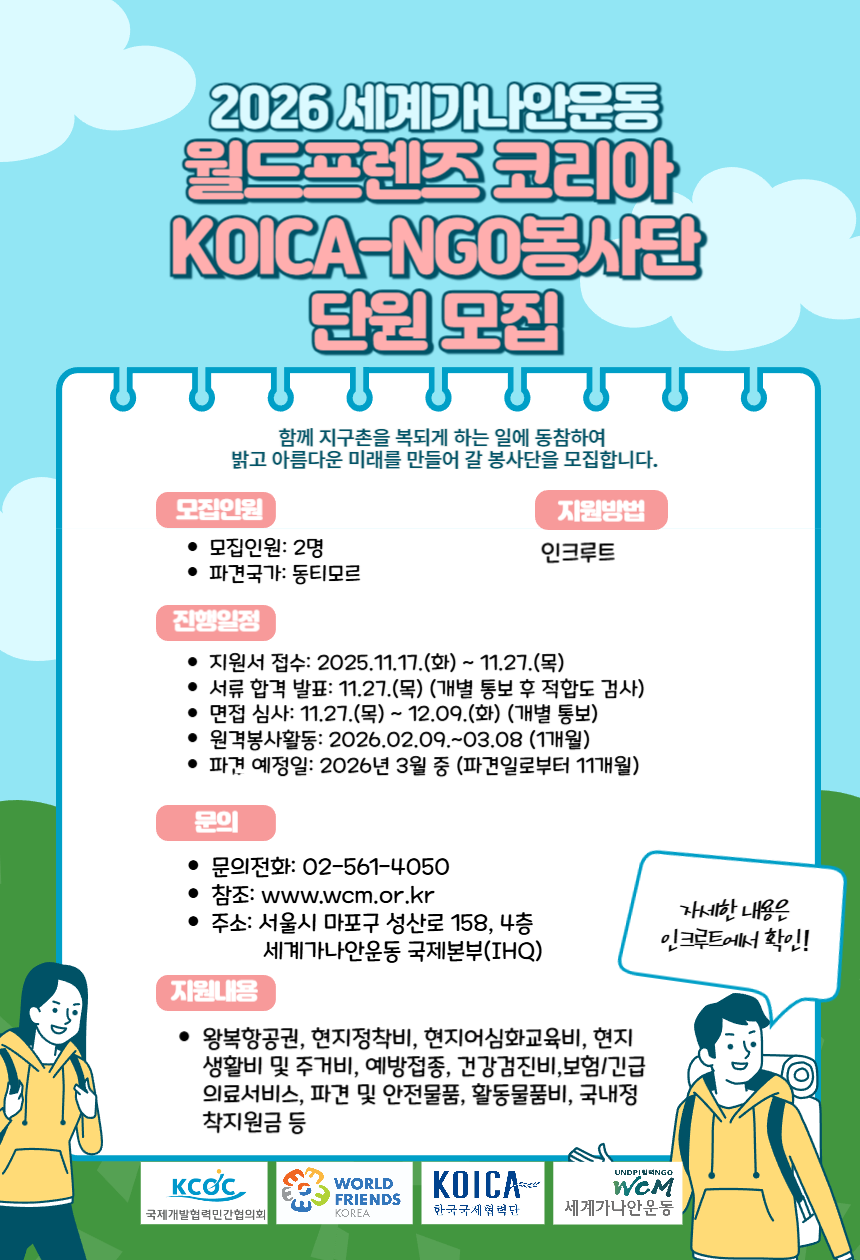 2026 세계 가나안 운동 월드프렌즈 코리아 KOICA-NGO봉사단 단원 모집