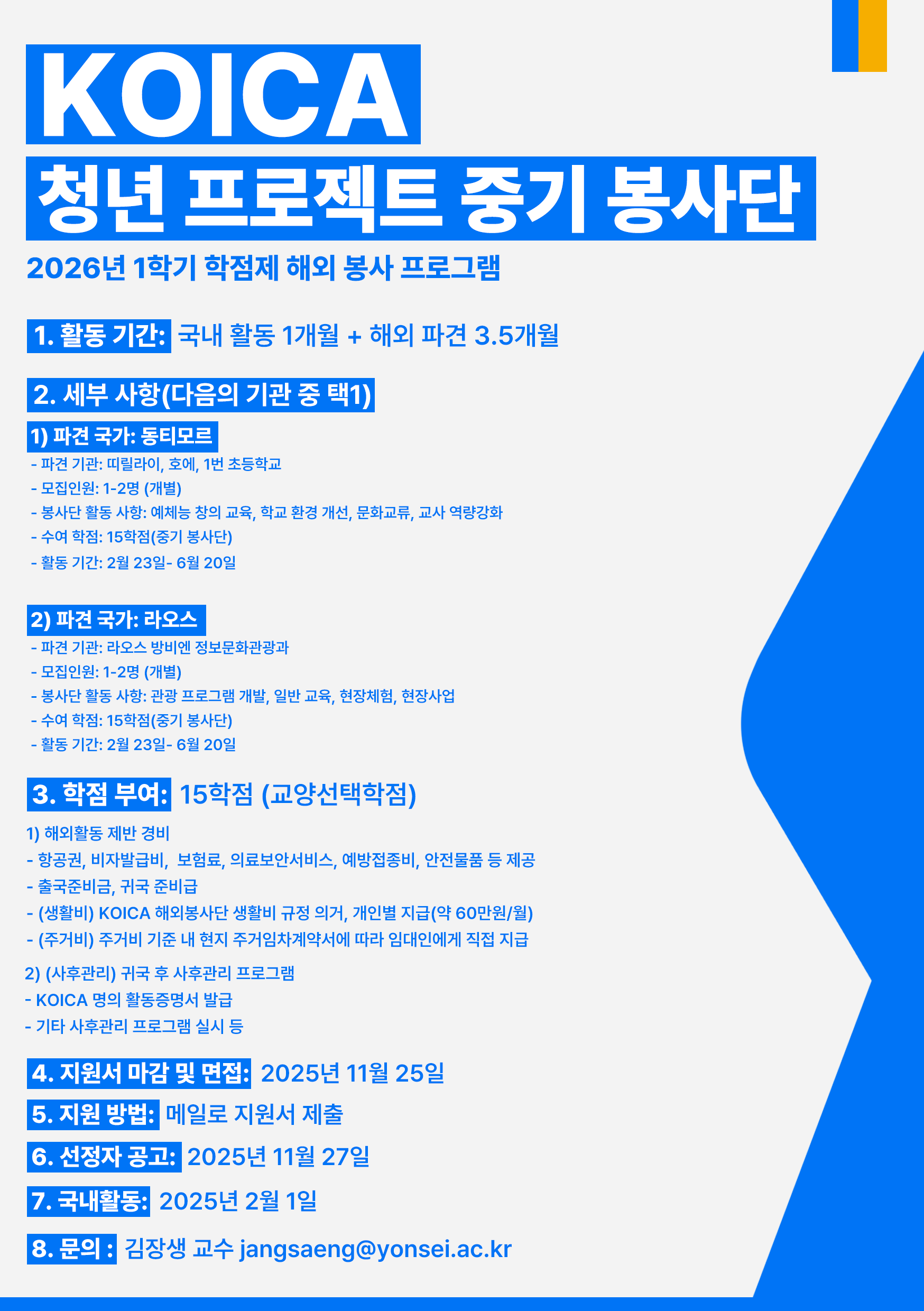 - 2026-1학기 KOICA 청년 프로젝트 봉사단 모집
