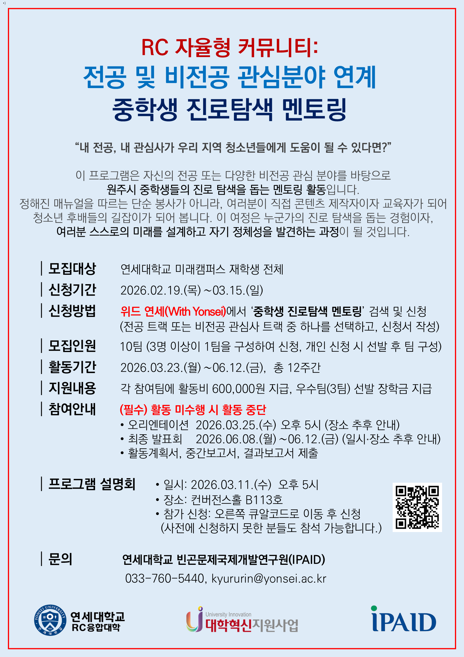 □ 프로그램 설명회: 2026.03.11.(수) 오후 5시 / 컨버전스홀 B113호