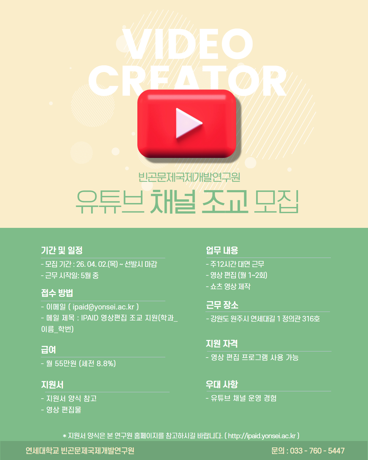 빈곤문제국제개발연구원 영상 편집 조교 구인 공고